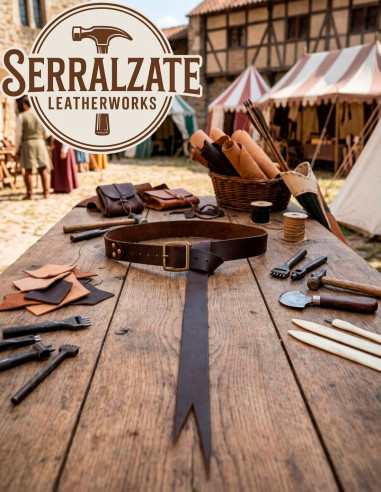 Cinto marrom Masculino Medieval em Couro, Estilo Montaraz