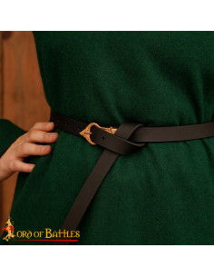 Cinto medieval Sajão fivela em bronze, couro preto