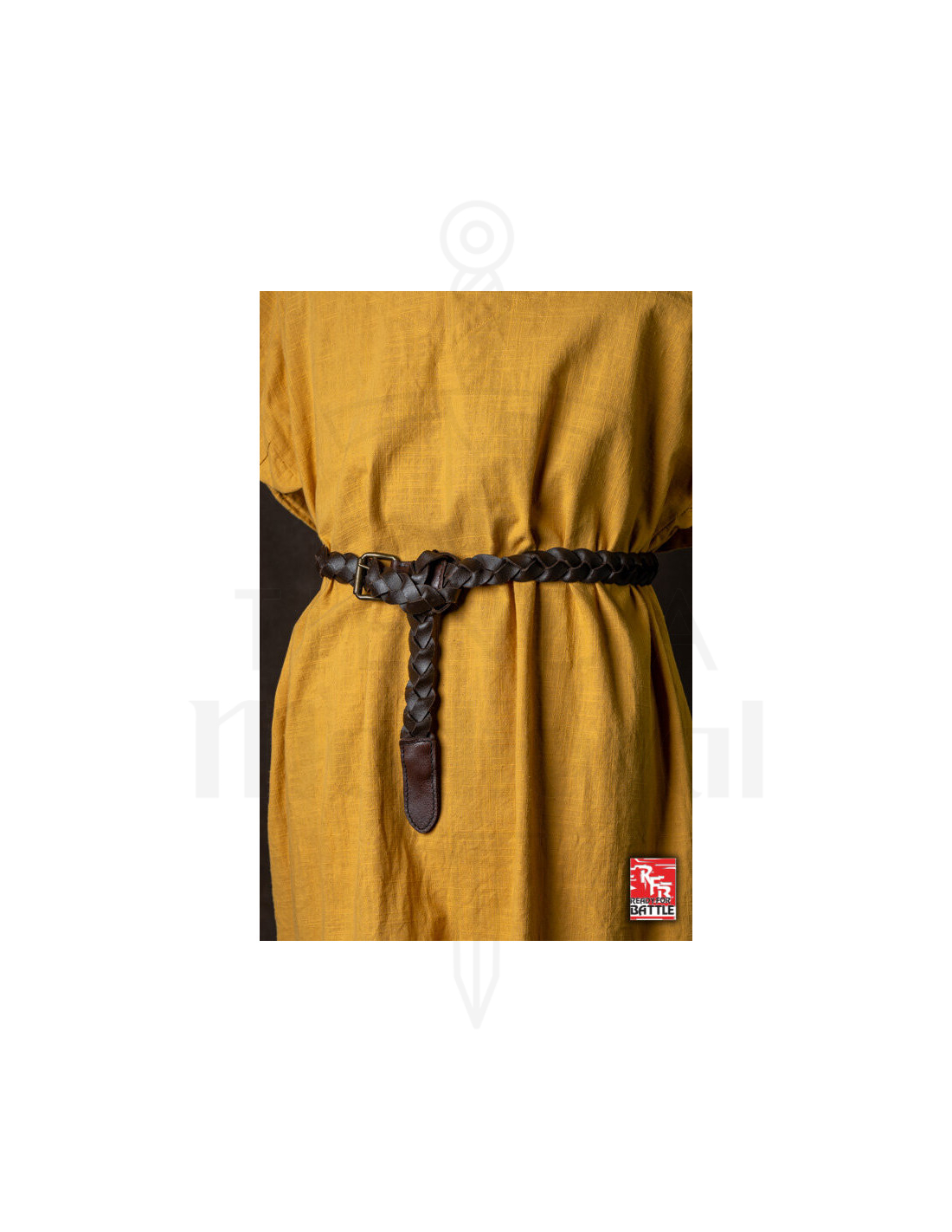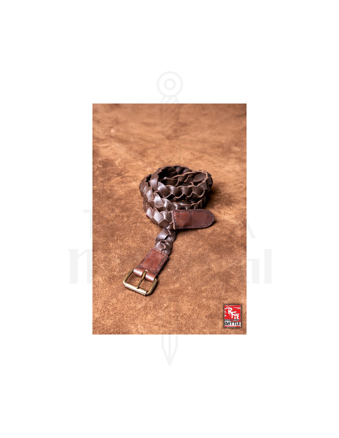 Este cinto trançado em couro de cor marrom leva você de volta à época das façanhas medievais, perfeito para acrescentar autenticidade ao seu traje ou cosplay de cavaleiro em treinamento. Com um design elaborado em couro de alta qualidade, seus três delicados cordões trançados oferecem uma base resistente e estilizada para segurar armas e acessórios, conferindo um toque de distinção ao seu visual.