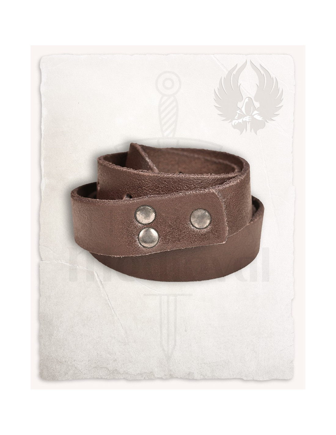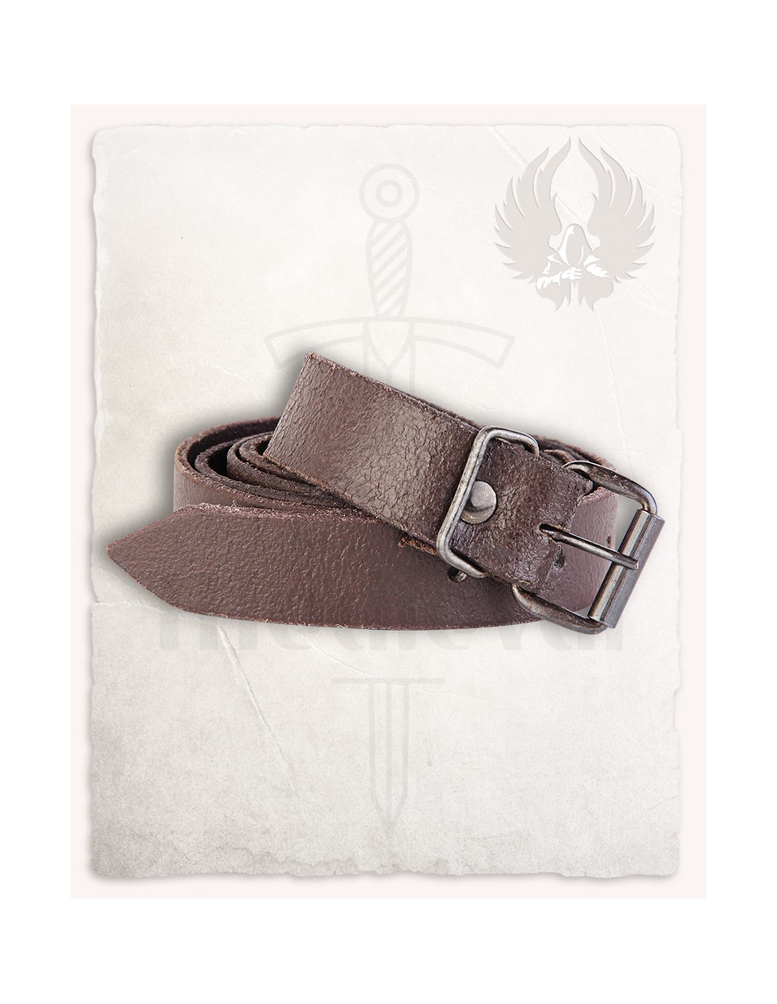 Está procurando um cinto que combine simplicidade e funcionalidade para completar seu visual medieval? Este cinto medieval fino em couro modelo Doran é a escolha perfeita. Seu design clássico, com uma fivela metálica com acabamento prateado, traz um toque elegante sem complicações, ideal para diferentes personagens ou estilos. Fabricado com partes de couro com rebites de alta qualidade, sua textura levemente rugosa transmite durabilidade e também um caráter autêntico e versátil.