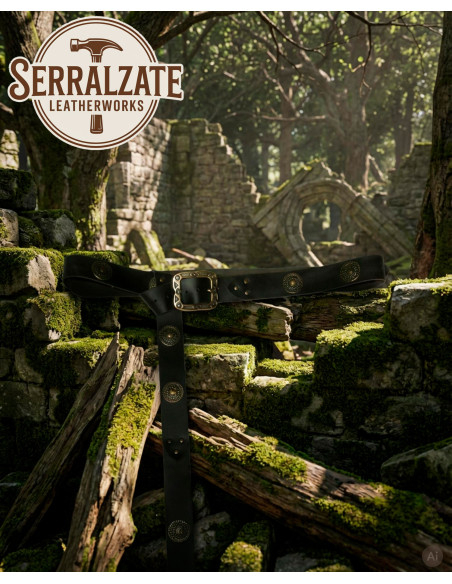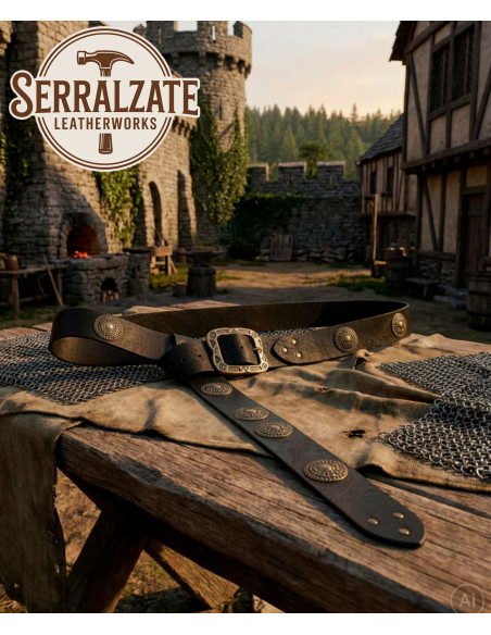 Cinto medieval duplo de couro modelo Arnulf, cor marrom