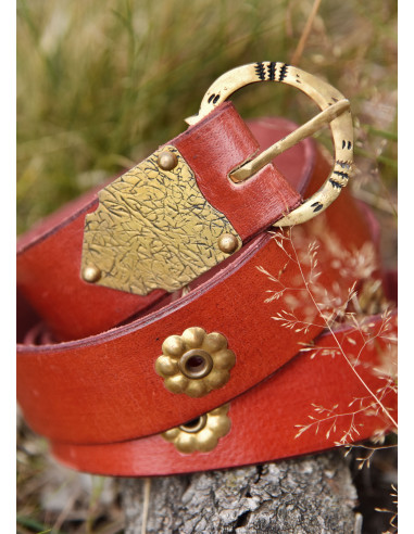 Cinto medieval século XII-XV com argola, couro vermelho