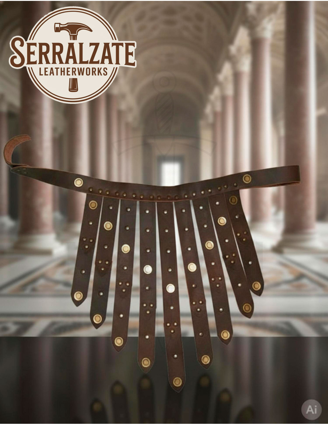 Inspirado no tradicional cingulum romano, este design traz uma aparência marcante e equilibrada, perfeita para completar looks que buscam caráter sem parecer exagerado. A disposição das tiras assegura um ajuste estável e um perfil discreto sob a roupa, facilitando usá-lo tanto em eventos de recriação histórica quanto no dia a dia.