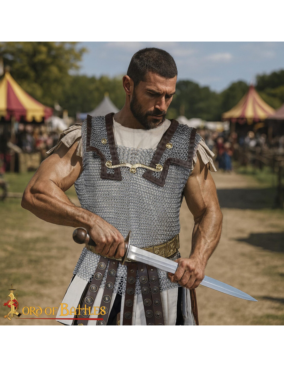 Uma referência à história: inspirado em achados arqueológicos, este subarmalis reproduz a peça que legionários e gladiadores usavam como guardião oculto, trazendo essa mistura de funcionalidade e presença que define as recriações históricas mais fiéis.