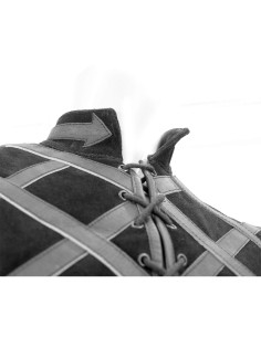 Este colete transforma o estilo clássico em uma peça pronta para a aventura: a camurça oferece uma sensação suave e resistente que abraça o corpo com caráter, enquanto as tiras de couro brilhante cruzadas na frente adicionam estrutura e um efeito visual que estiliza a silhueta. O resultado é uma peça que parece cuidada e, ao mesmo tempo, preparada para o uso contínuo.
