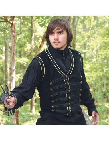 O colete do Pirata Malandrine do Mar Escuro funciona como seu veículo para essa imagem imponente. Com seu brocado de algodão que irradia luxo, e seus botões cuidadosamente desenhados, cada elemento foi pensado para projetar confiança, autoridade e um espírito indomável. É mais do que uma peça de roupa, é o seu passaporte para uma presença memorável. Ao vesti-lo, você se sentirá pronto para conquistar altos mares ou atrair olhares em qualquer reunião. É a peça que define você, a armadura moderna de um pirata com história e carácter. Porque você não busca o comum; quer destacar-se, deixar uma marca que perdure.