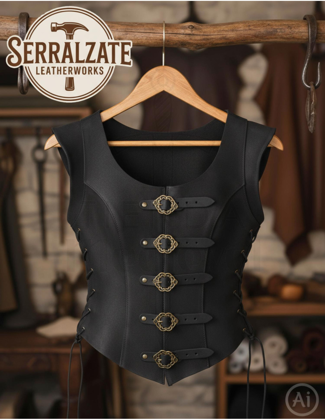 O modelo Julienne oferece um ajuste pensado para se adaptar a você, graças às cordas laterais que permitem regular a peça com precisão e mantê-la firme durante todo o dia, mesmo em movimentos intensos. Seu acabamento em preto proporciona uma presença elegante, que complementa trajes históricos e modernos por igual, adicionando proteção visual e estrutura ao seu vestuário.
