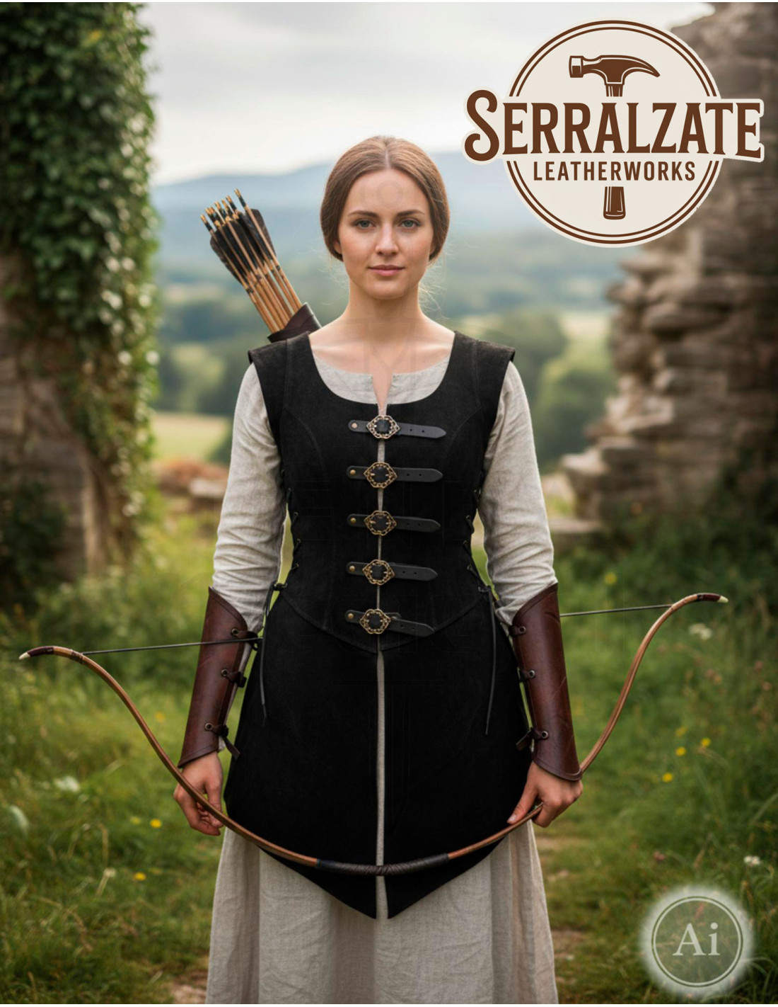 Além de parecer autêntico, este justillo oferece durabilidade pensada para uso contínuo. As costuras duplas e os ilhós reforçados garantem que cada ponto suporte a ação da recriação histórica e o movimento no palco, enquanto o couro selecionado de produtores nacionais evita ressecamento e fissuras, mantendo uma textura flexível e atraente com o passar do tempo.
