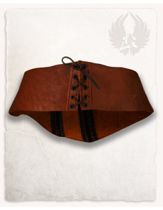 Se procura um corpete autêntico e duradouro para complementar o seu traje medieval, o corpete Talia em pele castanha é a escolha perfeita! Este sutiã tem um estilo underbust e pode ser perfeitamente combinado com blusas. É feito de seis peças de couro forte que são conectadas com tiras de camurça. Isso significa que ele se adapta perfeitamente a qualquer tipo de corpo. Um cordão na parte de trás permite que você ajuste o tamanho e ajuste. O corpete fecha com duas fivelas de latão fundido na frente, onde o tamanho também pode variar ligeiramente.