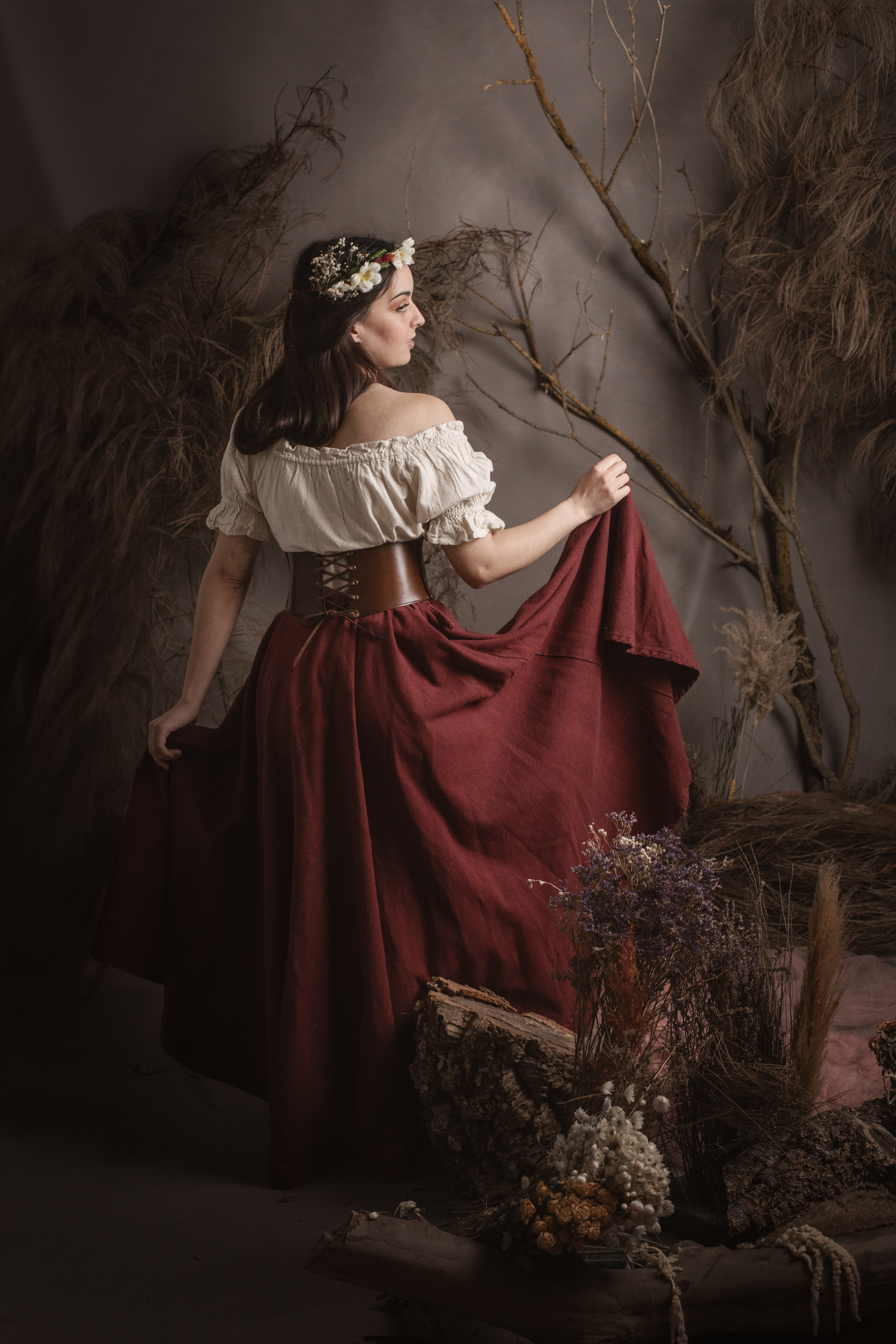 Corpete medieval em algodão bordô modelo Annabelle