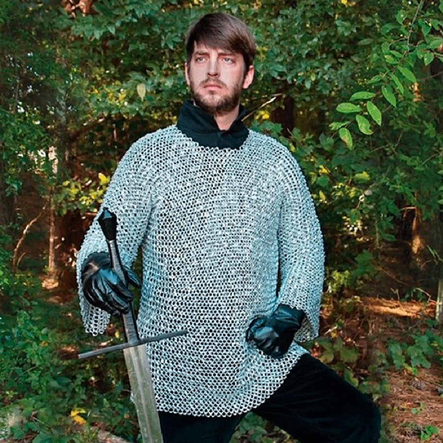 Cota de malha longa medieval modelo Richard, acabamento em aço