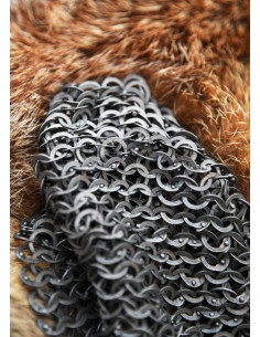 Seu tecido europeu de argolas planas combinadas com rebites arredondados não só garante uma resistência excepcional, mas também proporciona um acabamento estético que reflete a maestria da ferraria antiga. Seu design alternado de argolas sólidas rebocadas oferece um equilíbrio perfeito entre flexibilidade e proteção, permitindo conforto sem sacrificar durabilidade.