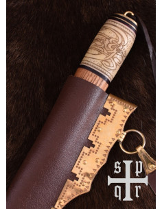 Num mundo onde a aparência e a funcionalidade marcam a diferença, esta faca artesanal com aço de damasco de 256 camadas e um design que combina madeira e osso reflete o teu carácter indomável. O seu peso e tamanho, cuidadosamente equilibrados, proporcionam-te controlo absoluto e conforto em cada movimento. A bainha de couro com decorações em latão complementa o seu ar de guerreiro, pronto para te acompanhar em qualquer desafio ou coleção. Não importa se procuras uma peça de história, um objeto de exibição ou aquela ferramenta que fortalece a tua presença — o Faca Viking, Aço de Damasco, é a tua melhor escolha para transformar o teu estilo e consolidar essa imagem de força e autenticidade que queres projetar.