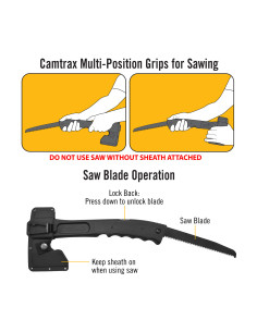 - Design multifuncional: Com comprimento total de 30,5 cm, o CAMTRAX combina três funções em uma ferramenta. Possui cabeça de machado em aço 3Cr13 com fio de corte de 7cm, martelo no pescoço e serra lockback de 17,8cm integrada ao cabo ergonômico.