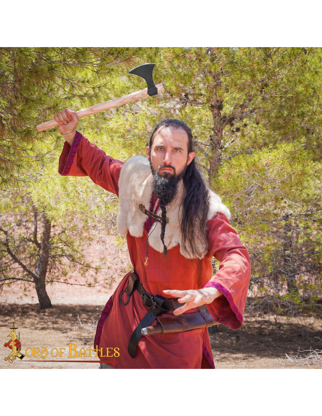 O Machado vikingue de combate, aço carbono forjado à mão transmite essa conexão imediata com tradições de guerreiros, ao mesmo tempo que oferece utilidade real no campo e na natureza. A cabeça metálica, escurecida para um acabamento que não passa despercebido, conserva um fio brilhante que facilita cortes limpos, resultando em menos esforço e mais controle em suas tarefas ao ar livre.