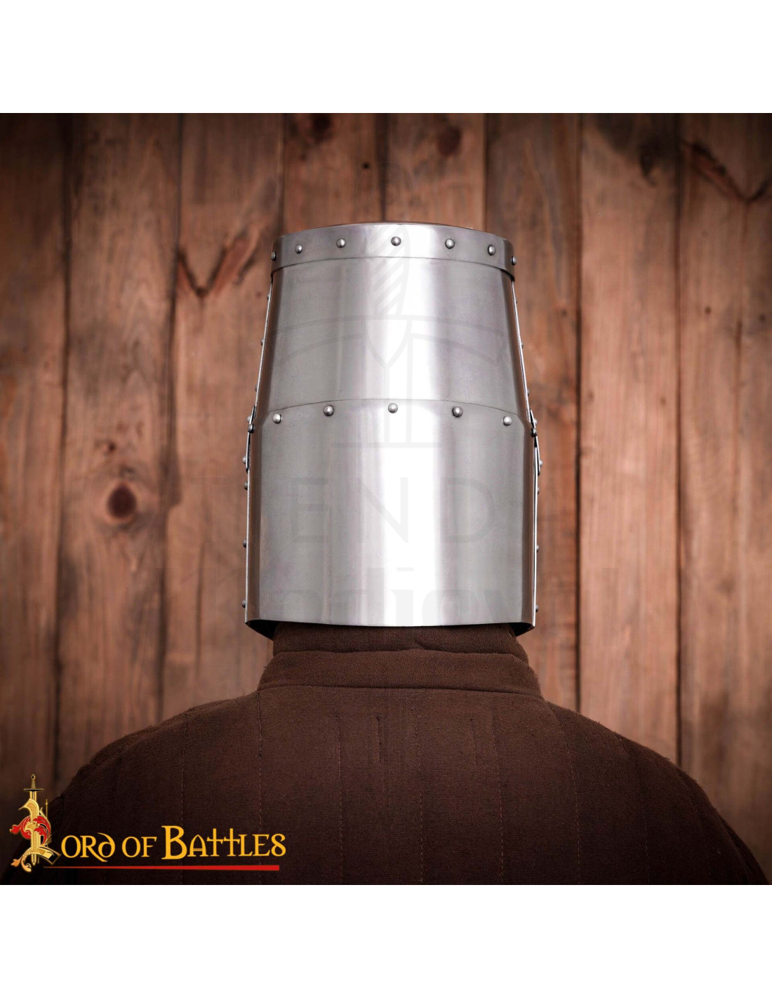 Perfeito para quem deseja exibir-se de forma autêntica, com um capacete que combina proteção, história e funcionalidade, visualizando em cada detalhe a evolução do equipamento dos cavaleiros medievais, prontos para defender sua honra em qualquer evento.