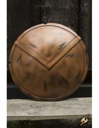 Uma característica proeminente deste escudo é a capital lambda, ou em forma de V, esculpida em sua face. Este lambda é um símbolo de bravura e coragem, e dá um toque autêntico e distinto ao escudo.