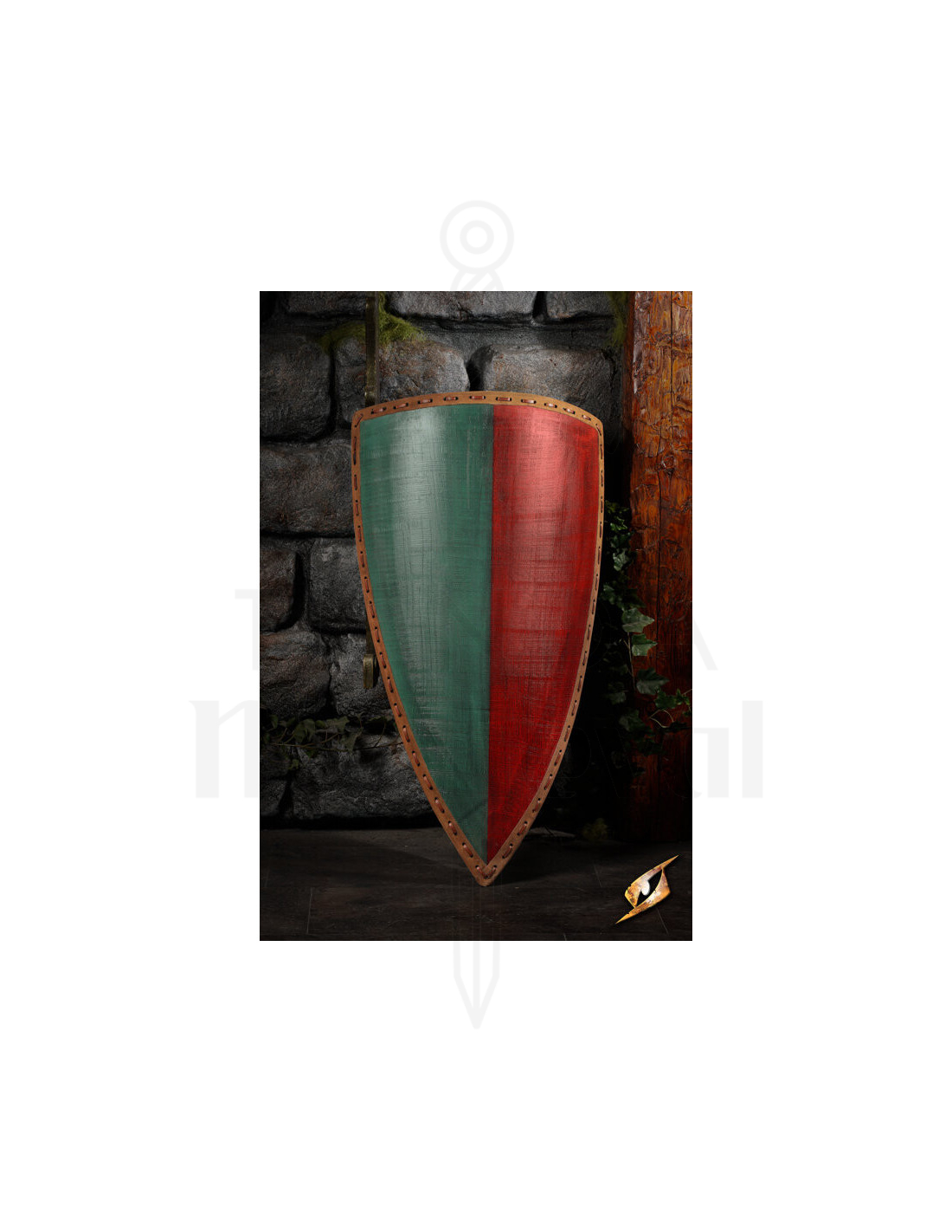 O uso da cor bicolor em divisões de verde com vermelho, ou branco com vermelho, permite personalizar e mostrar sua insígnia, ou simplesmente exibir um estilo que impressionará na linha de frente. Ideal para LARP, cosplay, recriações históricas ou combate teatral, este escudo é a escolha perfeita para quem deseja um equipamento prático, leve e visualmente impactante em suas aventuras medievais.