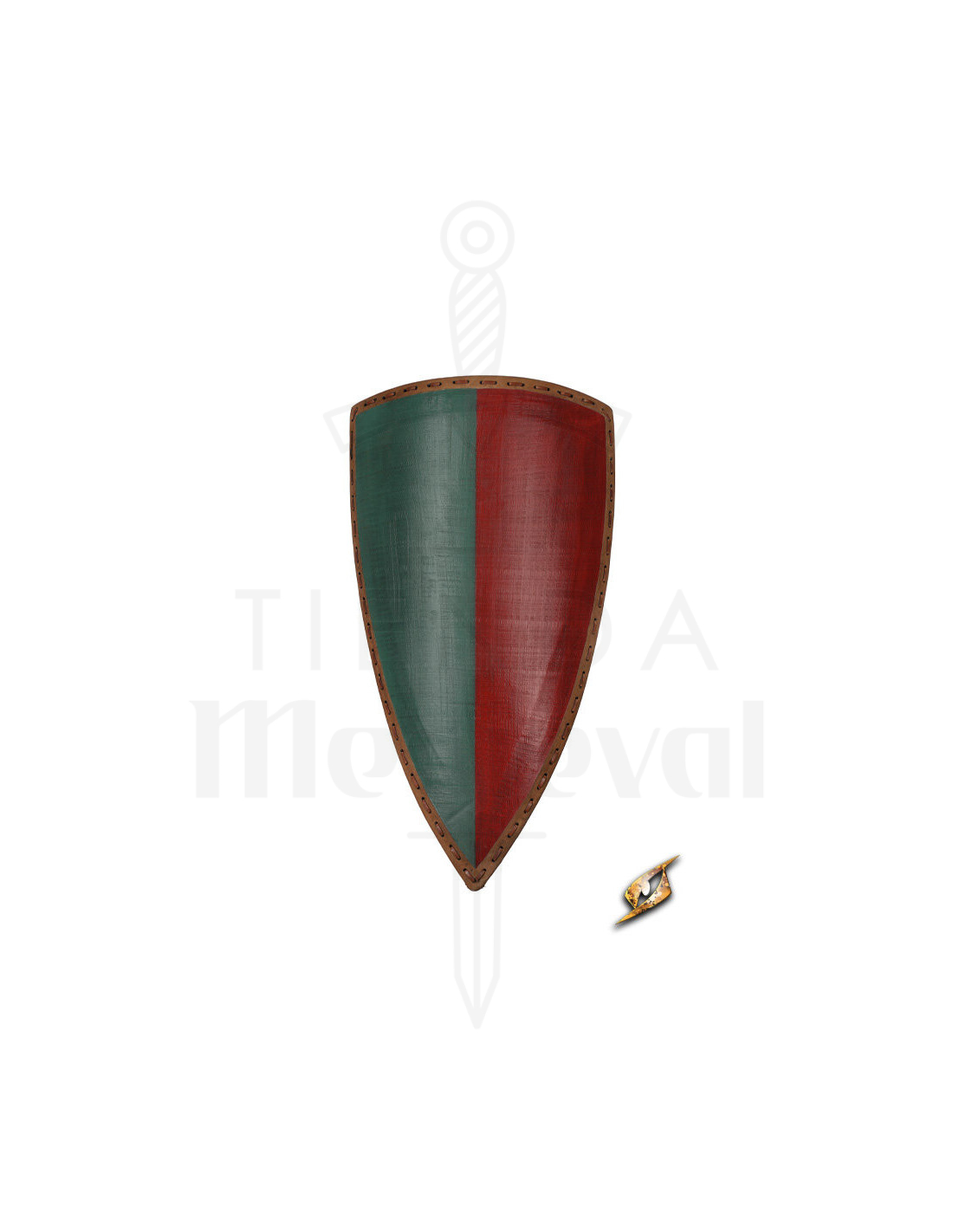 Você procura um escudo que combine simplicidade, robustez e um toque épico? Este escudo medieval bicolor para LARP, no modelo Heater, oferece uma estética clássica e funcional que combina com qualquer personagem que você desejar interpretar, desde cavaleiros nobres até mercenários de fronteira.