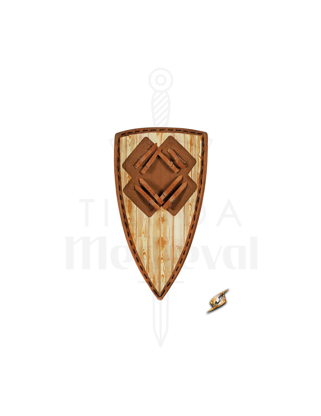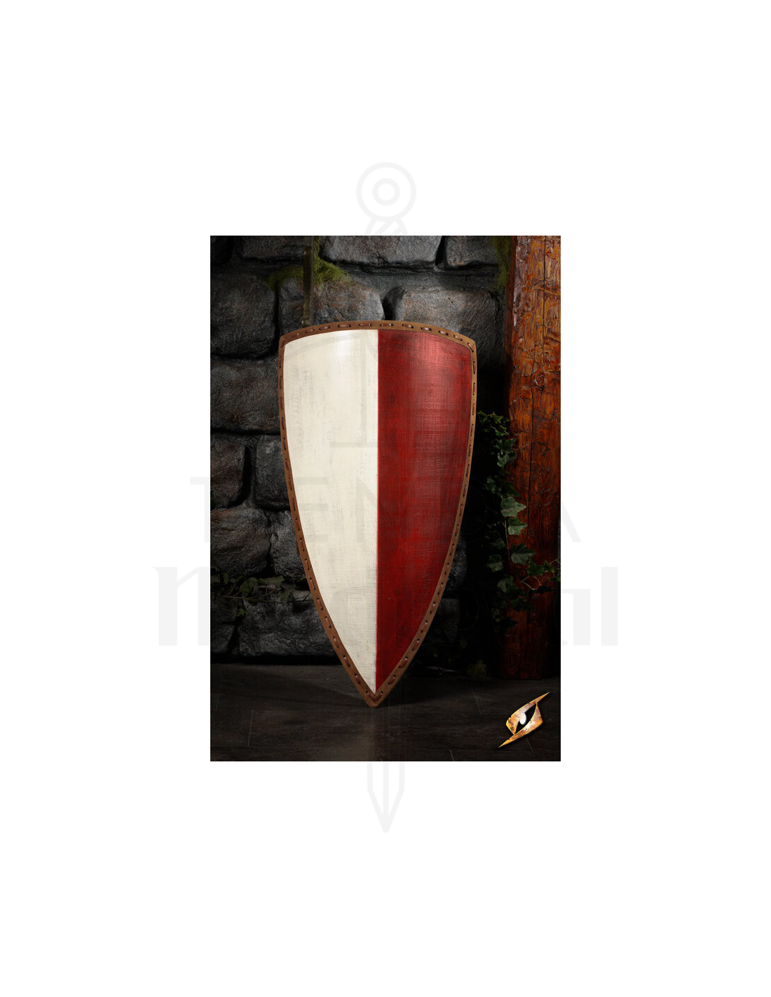 Você procura um escudo que combine autenticidade medieval com conforto e versatilidade? Este escudo bicolor de estilo heater é a escolha perfeita para suas aventuras em LARP, cosplay ou recriações históricas. Inspirado nos designs militares dos séculos XII a XIV, sua silhueta clássica e limpa se adapta tanto a cavaleiros quanto a mercenários, conferindo um toque imponente ao seu personagem.