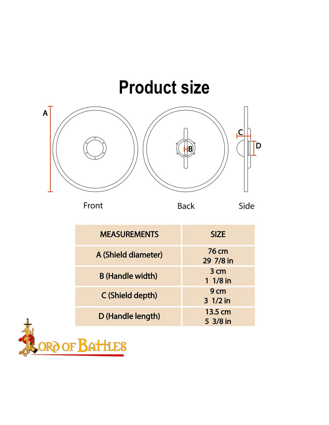Não espere mais para adquirir este magnífico escudo guerreiro viking. Marque sua presença no campo de batalha e fique impressionante em batalhas históricas da vida real ou simplesmente aprecie sua beleza em sua casa. Peça agora e esteja pronto para enfrentar qualquer desafio que aparecer no seu caminho!