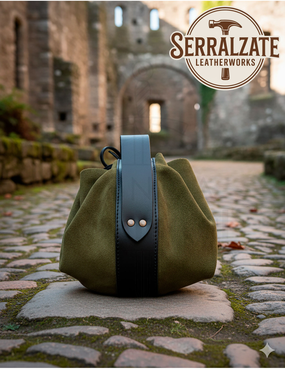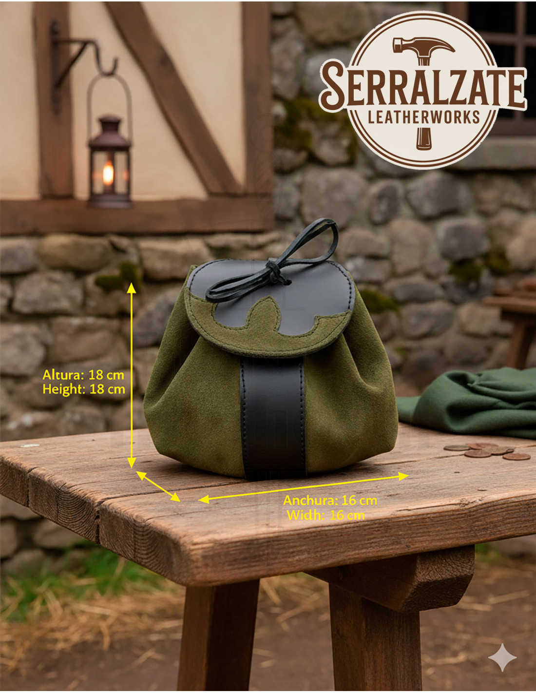 Seu design é perfeito para quem deseja aproveitar a versatilidade de uma bolsa de couro sem abrir mão da funcionalidade. Com um diâmetro amplo quando totalmente aberta, esta bolsa oferece espaço suficiente para levar todos os itens necessários durante suas aventuras em feiras medievais ou eventos de LARP. Além disso, a cor verde traz um toque fresco e vibrante, que complementa diversos trajes e personagens, permitindo que cada usuário expresse seu estilo pessoal de maneira única.