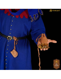 Procurando acessórios autênticos para completar seu traje medieval, viking ou de fantasia? Este pacote com 2 bolsas limosneiras em couro de camurça marrom claro irá transportar você diretamente para a Idade Média, oferecendo um toque rústico e funcional ao seu vestuário.