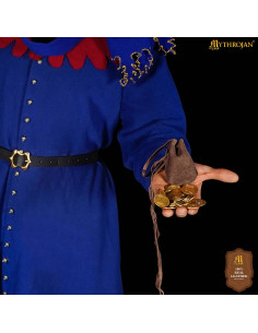 Procurando levar seus pequenos tesouros com estilo e autenticidade? Este kit de 2 bolsas limosneras medievais em couro de camurça marrom escuro é o toque perfeito para completar seu visual de época.