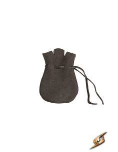 Seu design compacto e prático, com uma abertura superior fechada com um cordão de couro, garante que seus objetos mais valiosos permaneçam seguros e à mão. As três pontas na parte superior conferem um estilo distintivo que combina perfeitamente com trajes piratas, medievais ou aventureiros, trazendo um caráter autêntico e coerente ao seu visual.
