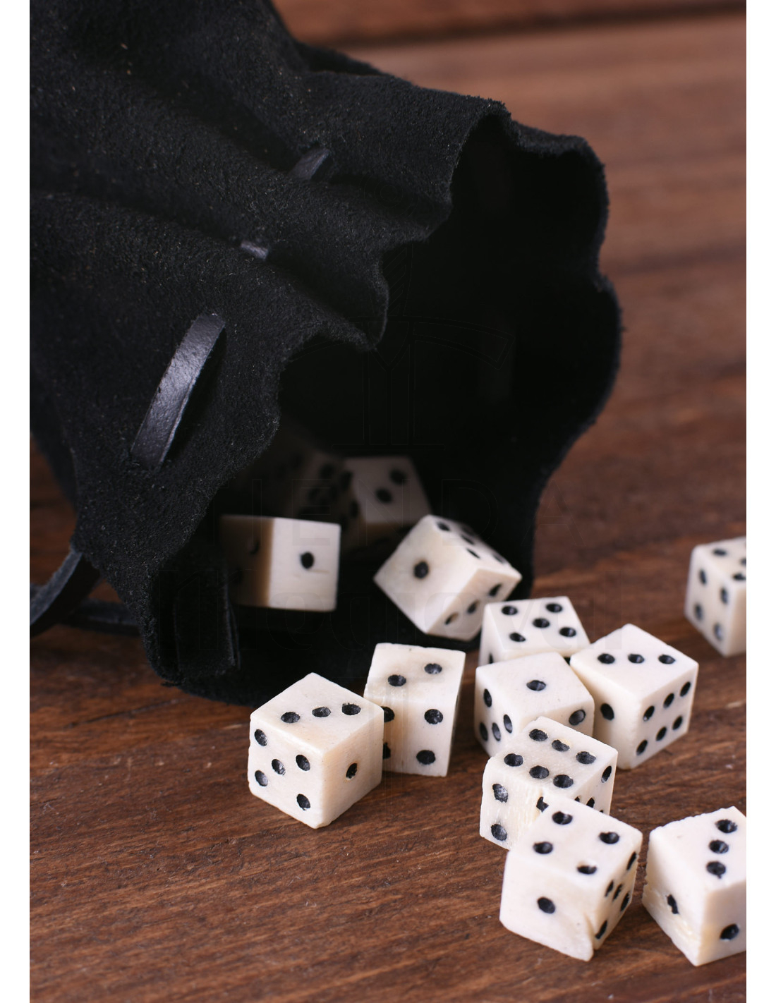 Thanks to its adjustable closure with two straps at the top, you can ensure your items are well protected, while its compact size makes it easy to carry with you without any problems. The smooth texture and elegant black finish give it a distinguished air, ideal for complementing historical outfits or adding a unique touch to your medieval decor or collection.