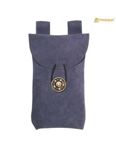 Bolsa limosnera medieval em pele de camurça com fecho de botão, cor azul prateado