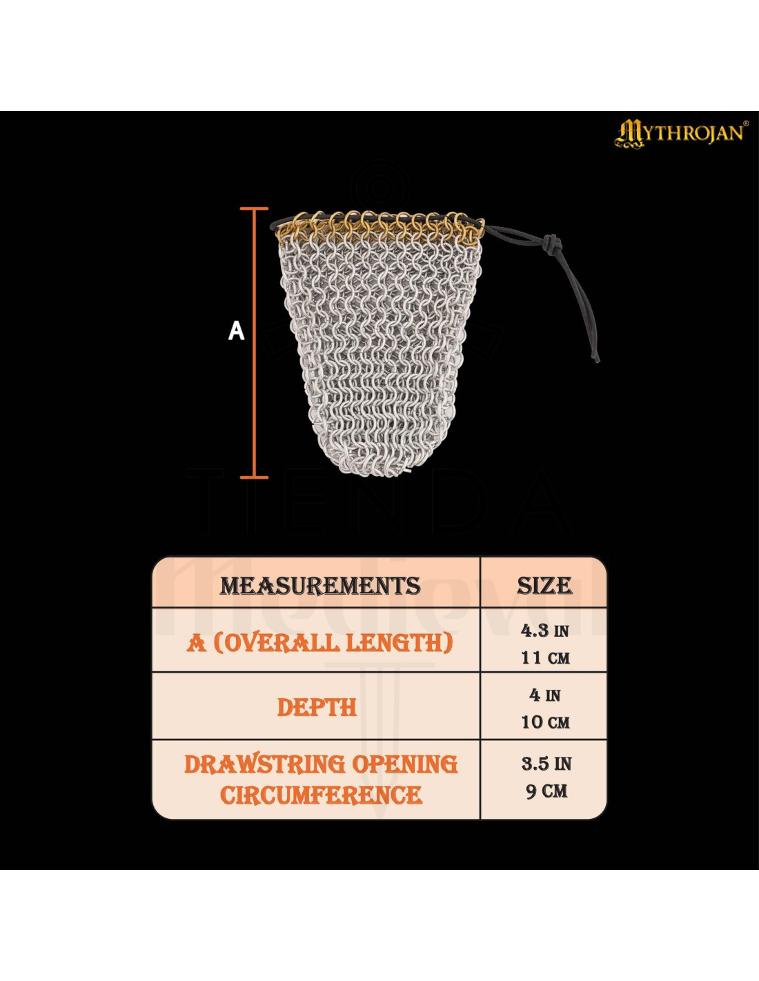 O cordão preto com nó deslizante permite fechar e abrir sem complicações, mantendo dados, moedas ou tokens seguros durante o transporte. Essa combinação de fechamento intuitivo e tecido metálico protege o que você guarda, ao mesmo tempo que adiciona um som característico ao movê-lo, realçando a ambientação na mesa ou na feira medieval.