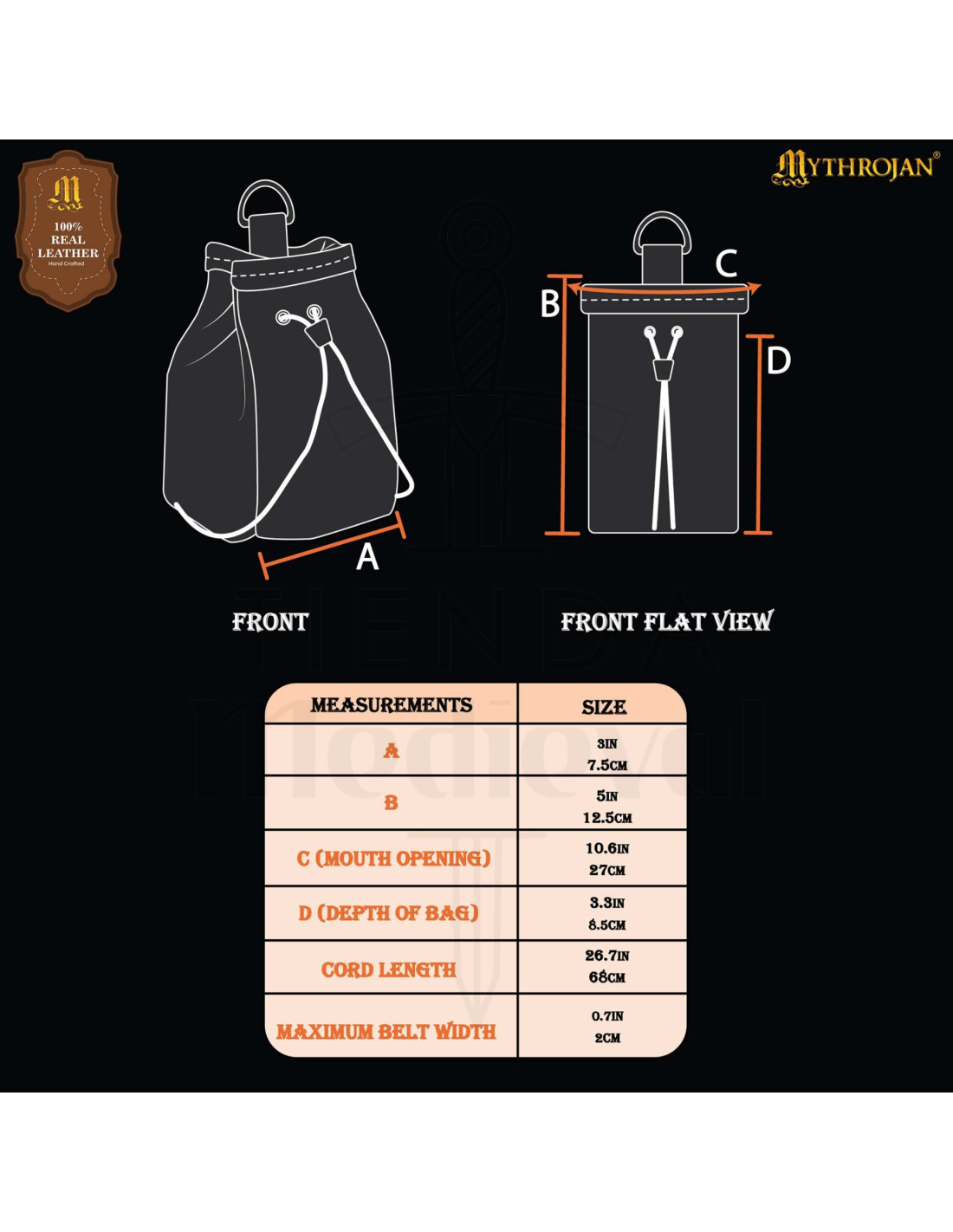 Graças à sua construção costurada à mão com costuras reforçadas, esta carteira resiste ao uso repetido, sem perder aquela estética envelhecida e autêntica que complementa trajes de época, trajes de LARP ou looks planejados para feiras. O anel de bronze na parte de trás e a alça de couro permitem fixá-la ao cinto ou a uma bandoleira, deixando as mãos livres e o acesso imediato ao que você precisar.