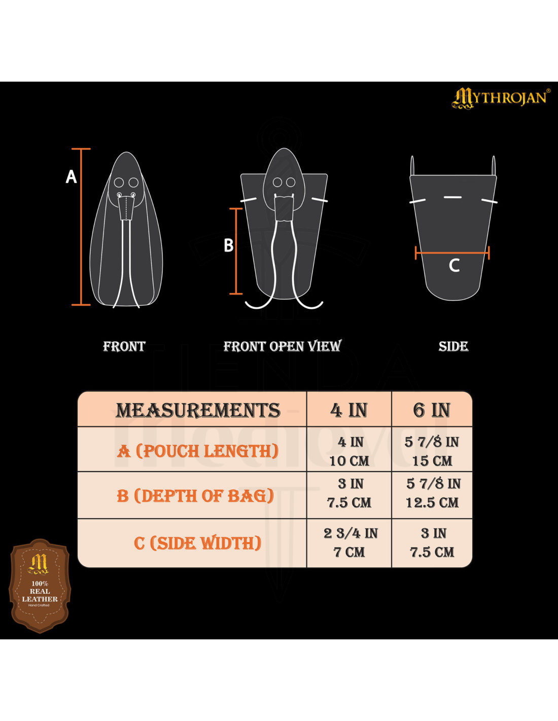 Disponível em dois tamanhos pensados para diferentes necessidades, funciona igualmente bem como complemento em recriações históricas, feiras renascentistas ou adereços para eventos de RPG, quanto como um acessório prático diário para quem busca um toque autêntico e discreto.