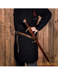 Consulta sobre Espada funcional Templária de uma mão com pomo de nogueira