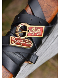 - Detalhes excepcionais: Completa com uma bainha de madeira marrom e couro, adornada com folheado de couro preto e garganta, esta espada é apresentada com um cinto de couro preto resistente. Os detalhes em bronze e latão, com motivos de dragão e leão sobre fundo vermelho, dão um toque de autenticidade e nobreza ao seu look!