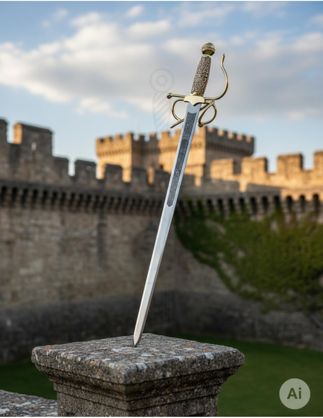 A Espada Colada del Cid é uma homenagem a Rodrigo Díaz de Vivar, o Cid, um bravo guerreiro e cavaleiro espanhol que dominou grande parte da Península Ibérica no século XI. Fabricada em Toledo, Espanha, esta espada possui lâmina de aço inoxidável de alta qualidade, garantindo sua durabilidade e resistência.