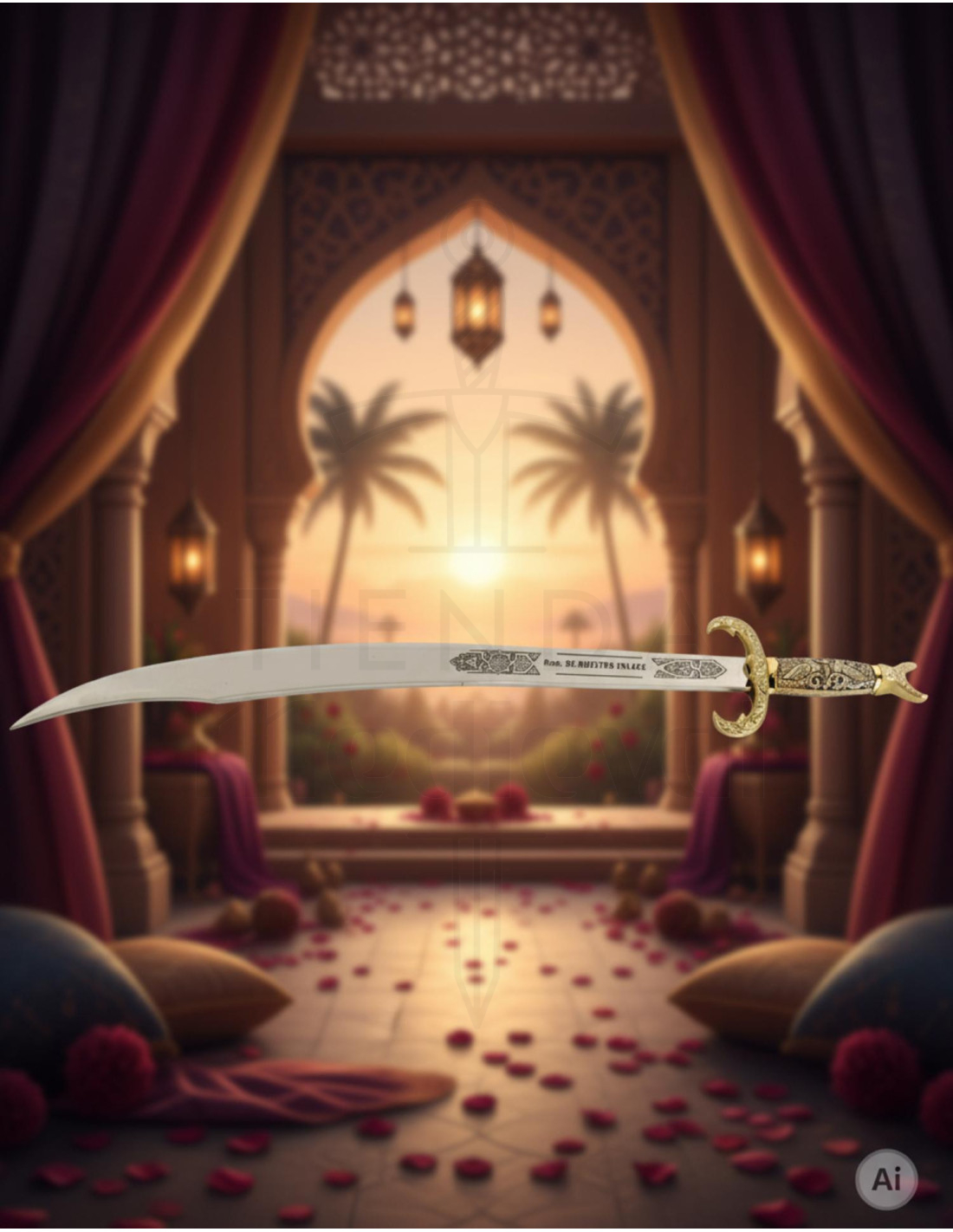 Esta espada cimitarra é uma arma refinada, fina e leve. Seu design decididamente nítido, com uma única borda e alça protetora, torna-o uma peça única. A sua origem está na Pérsia, embora também tenha sido utilizado na Índia durante os séculos XIII e XIV. Sua lâmina longa e curva foi projetada para cortar inimigos e cortar profundamente. Além disso, sua curvatura impede que a lâmina se encaixe no oponente, tornando-a perfeita para ataques montados.