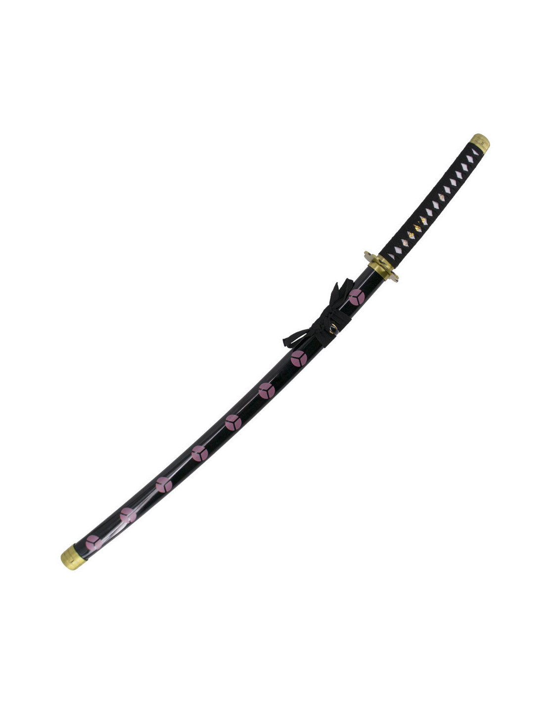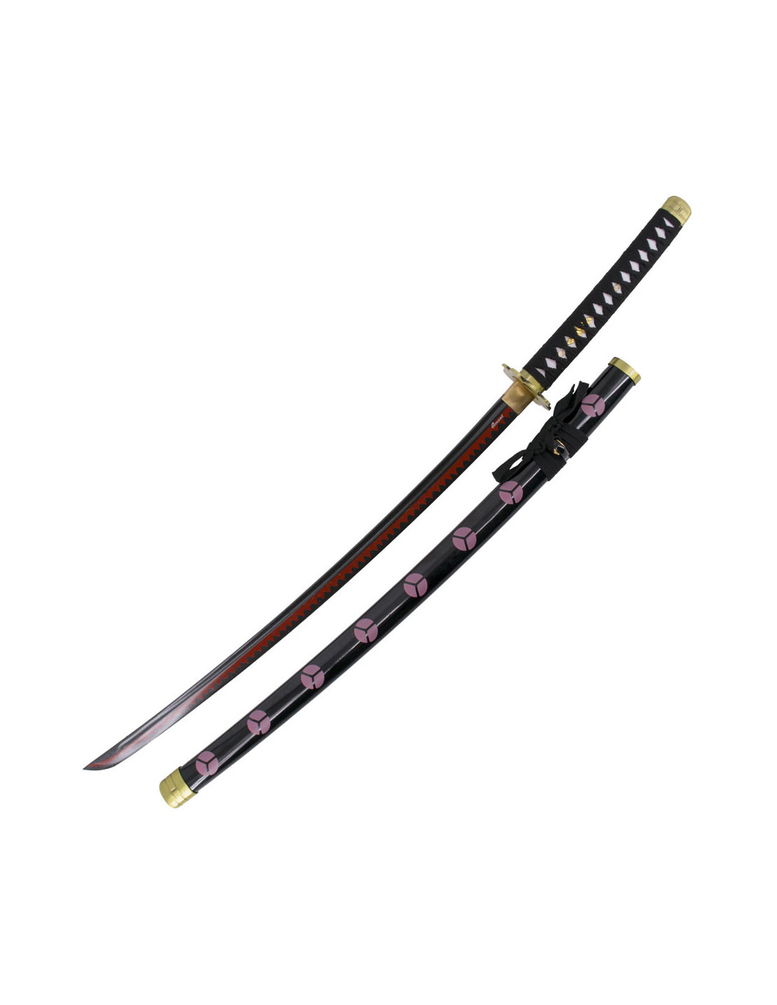 A katana prática básica Shusui de Zoro do anime One Piece é uma réplica não oficial que não pode faltar na coleção de qualquer fã da série. Com um comprimento de 105 cm, esta katana destaca-se pela folha afiada de aço carbono AISI 1045 com acabamento preto, com uma provocativa dentadura vermelha que lhe confere uma aparência única e característica.