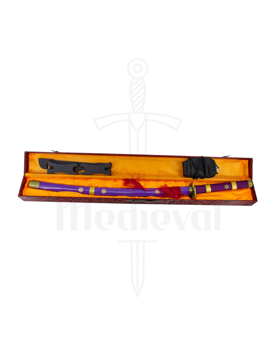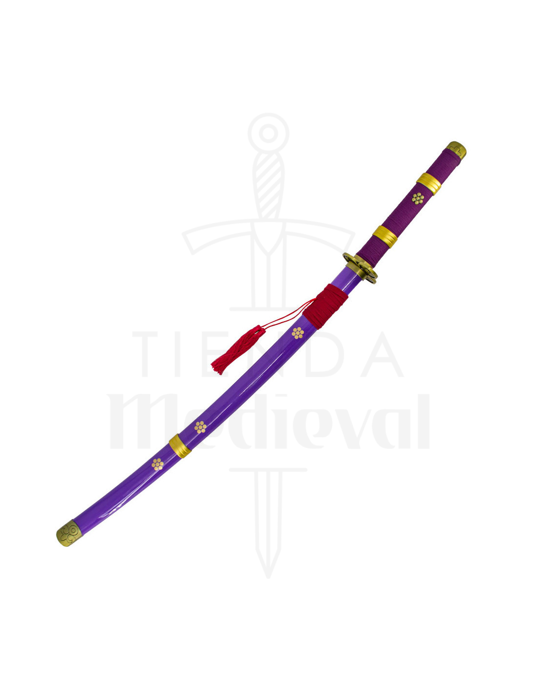 Adquira a impressionante katana funcional lilás Enma de Zoro de One Piece! Esta réplica não oficial é uma peça imprescindível para qualquer fã do famoso espadachim Roronoa Zoro e do mundo de One Piece.