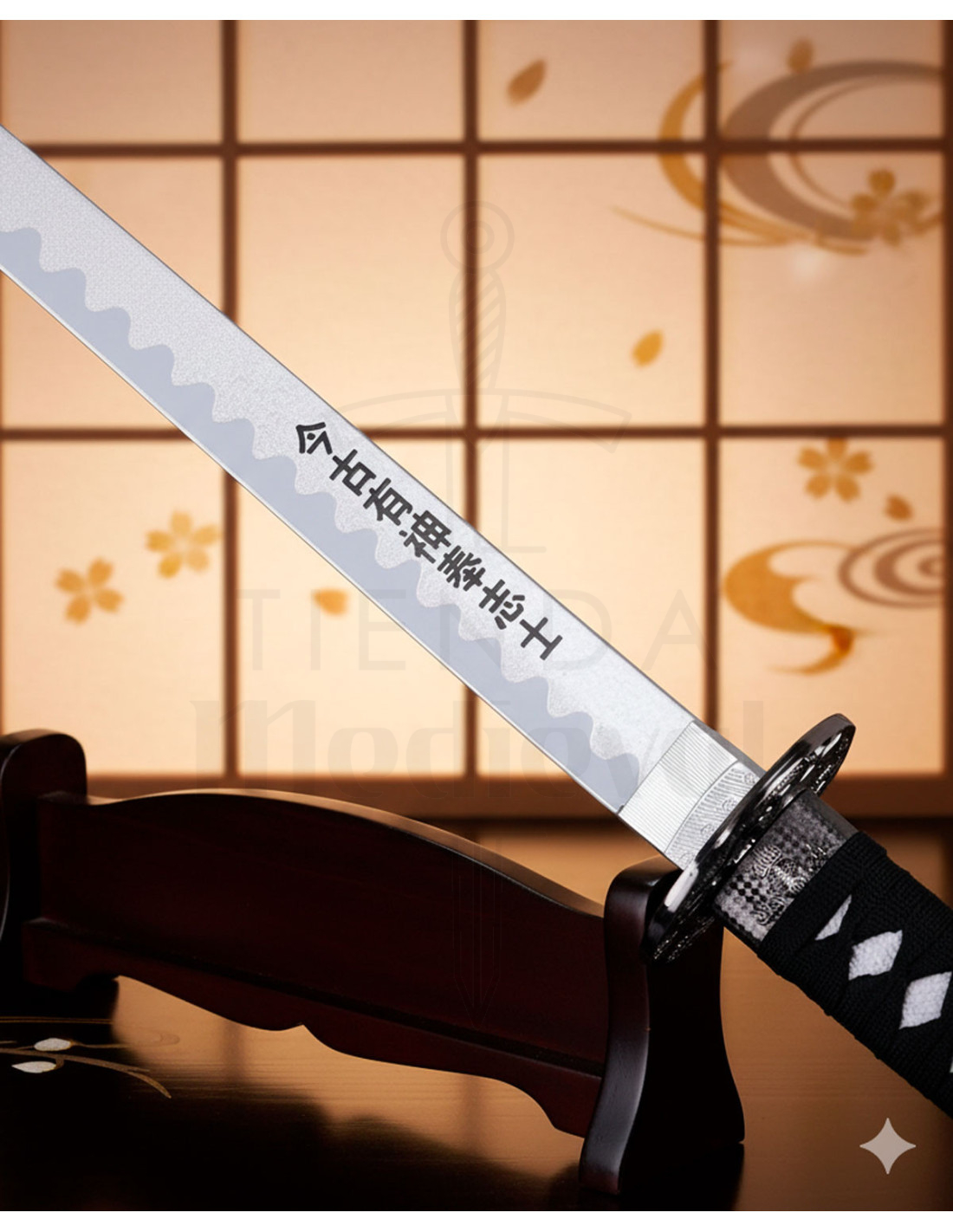 Perfeita para amantes da arte japonesa, colecionadores ou quem busca um complemento decorativo distinto, esta katana combina estética e funcionalidade em uma peça que exibe detalhes cuidadosamente elaborados, como as inscrições na bainha que evocam tradições ancestrais. Adicione um toque de cultura oriental à sua casa com um estilo único e sofisticado.