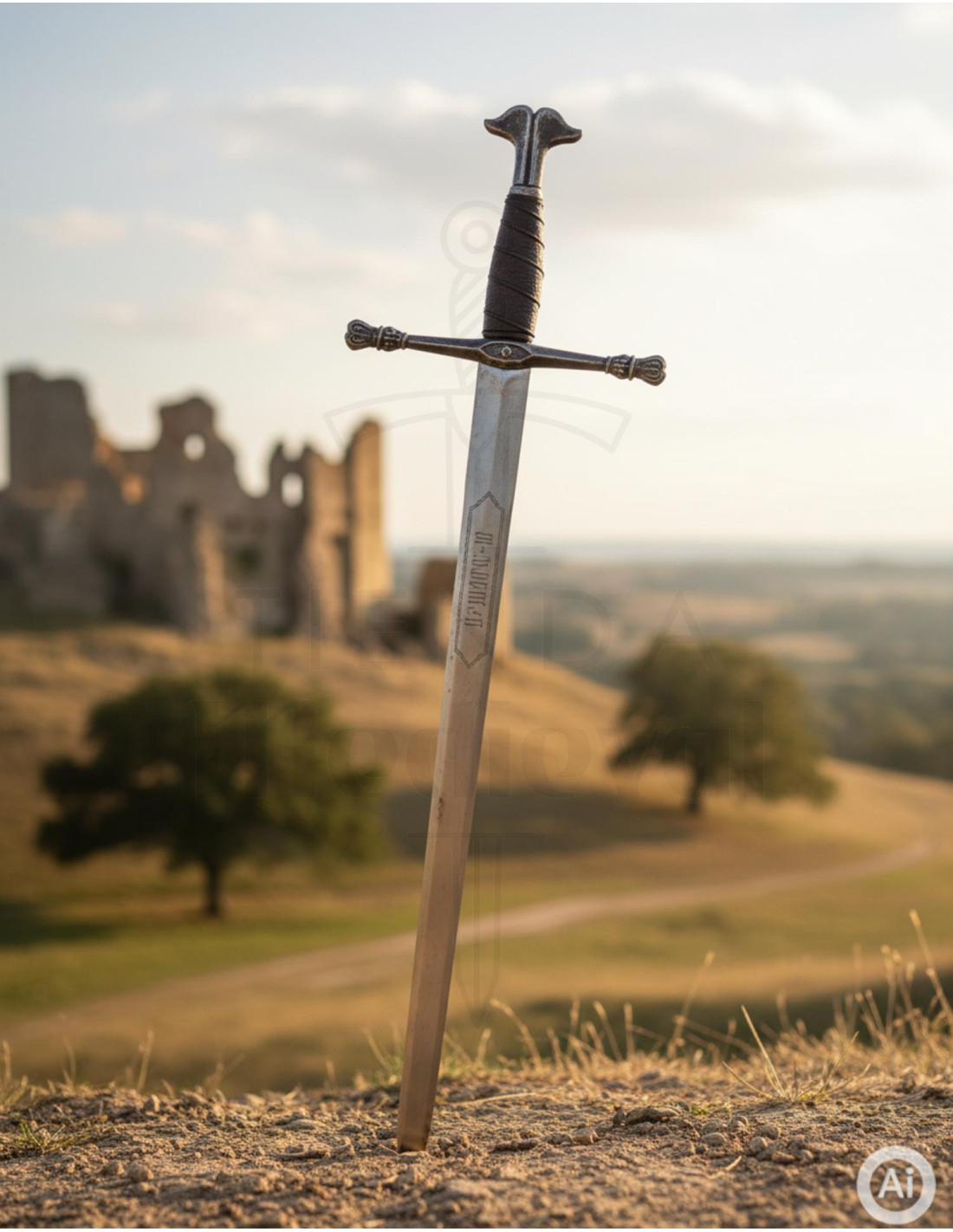 Descubra a majestade da Espada Carlos V com lâmina rústica gravada! Esta espada, com sua lâmina de aço forjado e acabamento rústico, é uma verdadeira obra de arte. A sua lâmina gravada confere-lhe um toque de distinção e elegância, tornando-a numa peça única.
