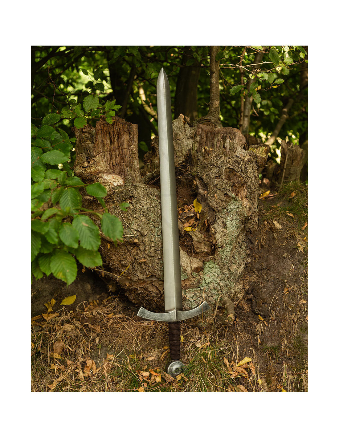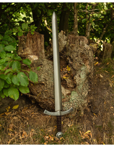 - Design Medieval Clássico: O modelo Heinrich é baseado em uma espada clássica de cavaleiro com uma fina ranhura decorativa na lâmina que lhe confere uma aparência histórica autêntica. A típica guarda, ligeiramente curvada para cima, e o botão do disco realçam o seu carácter medieval.