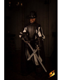Imagine empunhar uma espada que não é apenas uma ferramenta de combate, mas também uma obra de arte. A espada para duelos negra é a escolha perfeita para quem busca precisão e elegância em cada movimento. Inspirada nas espadas da Europa medieval tardia e do Renascimento, seu design estilizado e equilibrado permitirá que você se destaque em qualquer batalha, seja em um evento de LARP, cosplay ou em uma narrativa imersiva.
