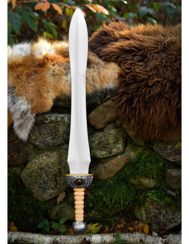 O modelo Tiberius combina presença histórica com praticidade no combate recreativo, oferecendo uma aparência autêntica sem abrir mão da segurança necessária no LARP. A lâmina pintada em tom prateado, de dupla face visual, mantém um contorno reto com leve curvatura na ponta, facilitando manobras fluidas e ataques credíveis que se destacam tanto em combates rápidos quanto em coreografias lentas.