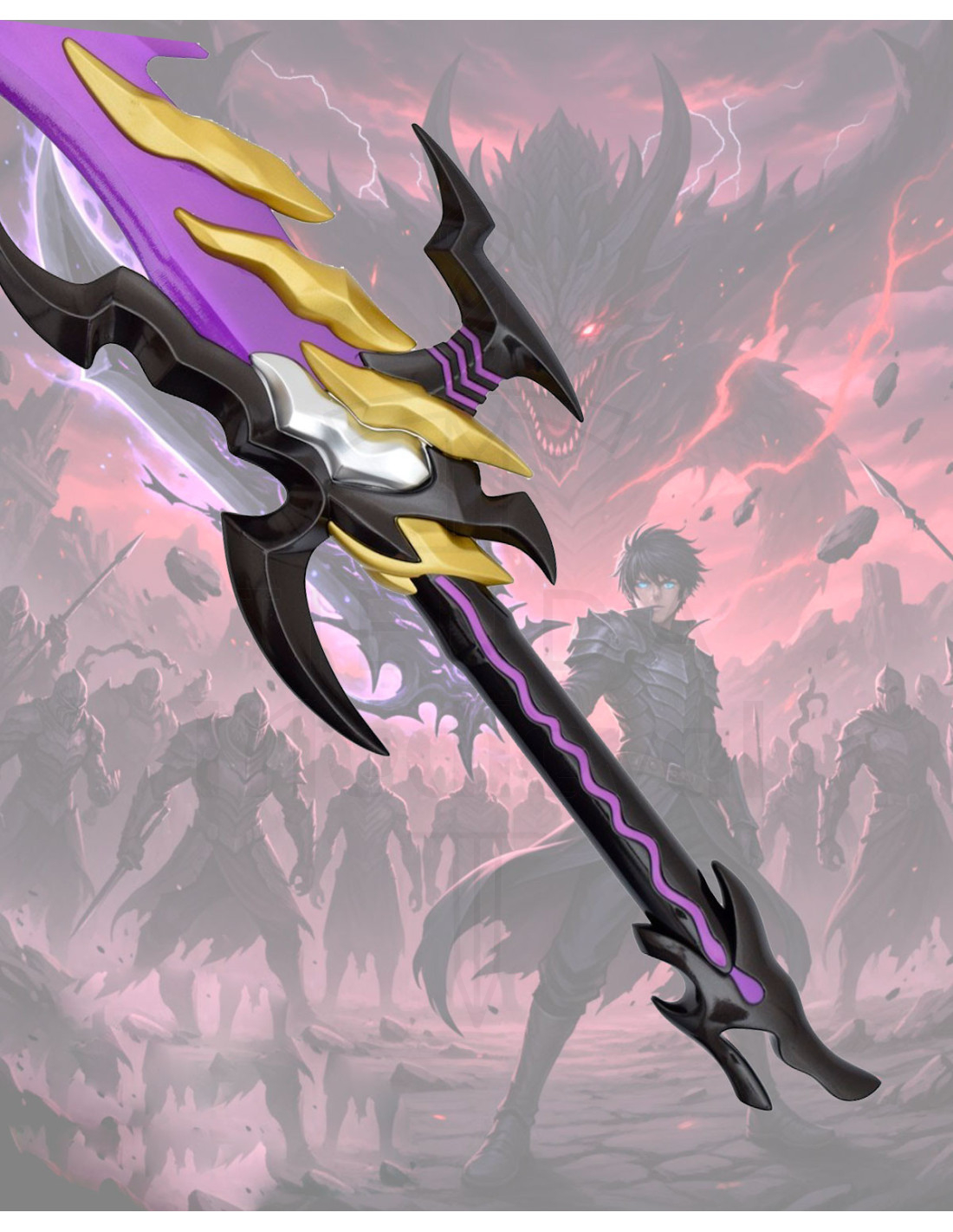 Para os seguidores do universo de Solo Leveling, esta réplica conecta-se diretamente com a figura de Sung Jinwoo, personagem central cuja aura e evolução deixaram marca na comunidade, transformando este objeto em um tributo visível à sua iconografia e um item desejado pelos colecionadores.