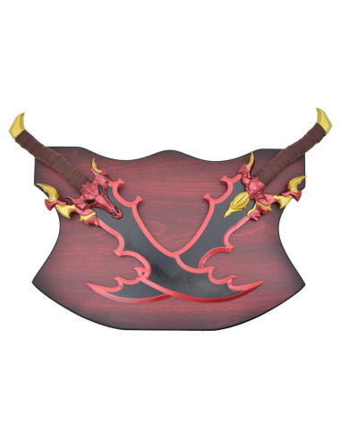 Se você deseja comprar as Facas não oficiais Demon King's Dagger de Jinwoo - Solo Leveling, receberá duas peças prontas para exibir, perfeitas para colecionadores e para quem busca um elemento decorativo com carácter e narrativa própria.