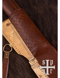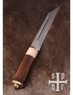 Esta arma, fabricada pela SPQR, combina a durabilidade de um aço de alto teor de carbono com a elegância de detalhes em madeira, osso e latão que evocam épocas passadas. Desde o peso leve de 450 gramas até ao seu comprimento perfeito de 43,5 centímetros, cada elemento foi pensado para oferecer um equilíbrio entre autenticidade e funcionalidade. A bainha de couro com detalhes em latão não só protege a lâmina, como reforça a sensação de exclusividade. Com esta peça, não tens apenas uma espada, tens uma narrativa tangível de histórias épicas, prontas a serem revividas na tua presença e em cada movimento, em cada recreação ou exibição que te proponhas. Porque tu não procuras apenas ter objetos, procuras viver a história e sentir em cada toque o espírito dos antigos combatentes, entendendo que ser um colecionador vai além de guardar objetos — trata-se de reviver passado glorioso e transmitir essa paixão aos que te rodeiam.