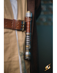 Mas isso não é tudo, o cabo do heróico sabre de luz é feito de espuma de poliuretano (PU) parcialmente envolta em couro. Isso não só lhe dá uma aparência autêntica, mas também lhe dá um aperto firme e confortável para que você possa manuseá-lo com facilidade e precisão.