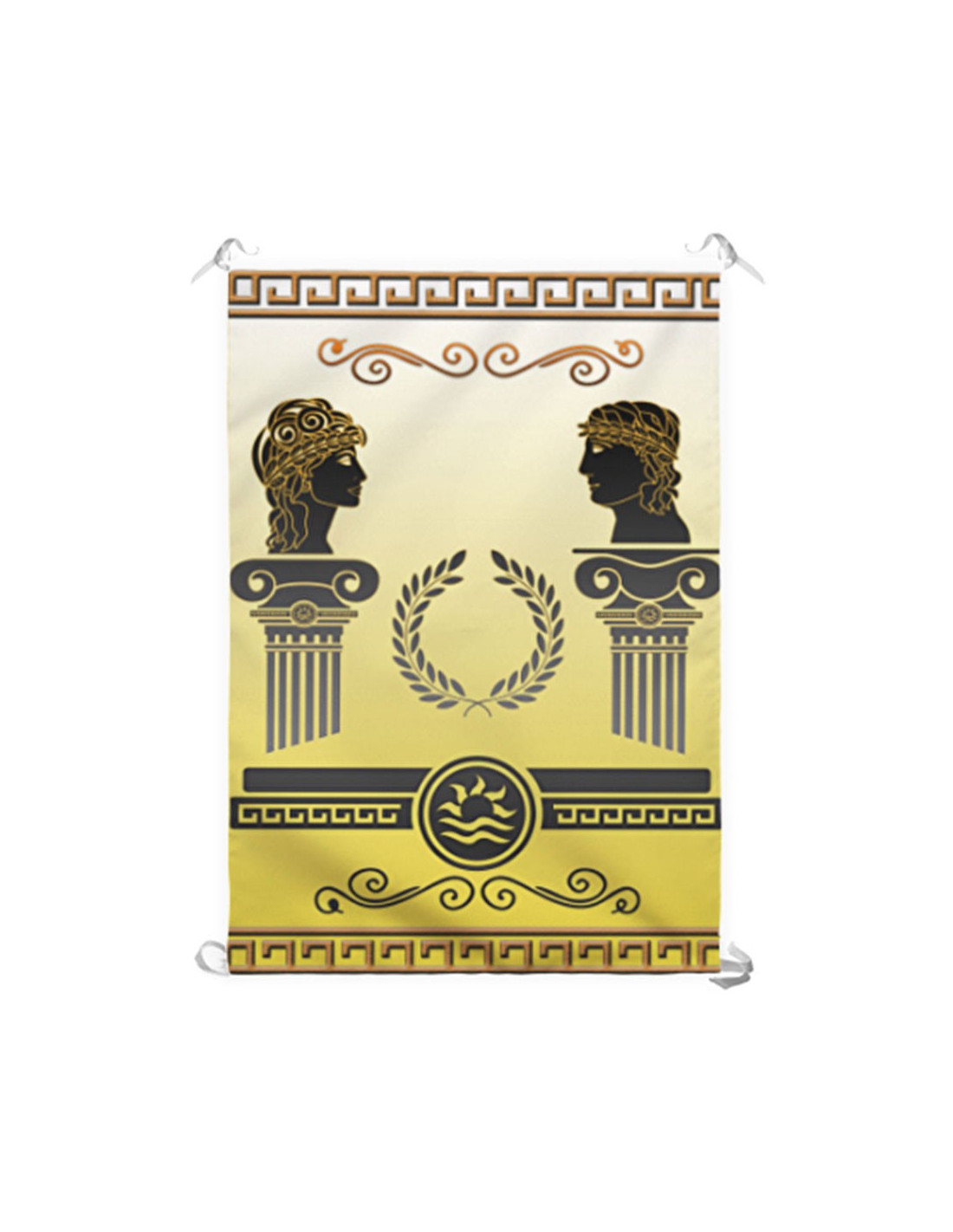 Estandarte dos Deuses Gregos de 70x100 cm. É o acessório perfeito para os amantes da mitologia e da cultura grega. Com seu design vibrante e detalhado, este estandarte captura a essência dos deuses e deusas que governaram o Olimpo.